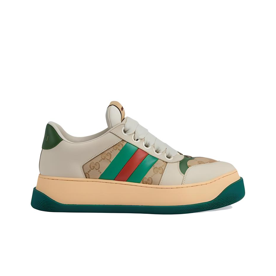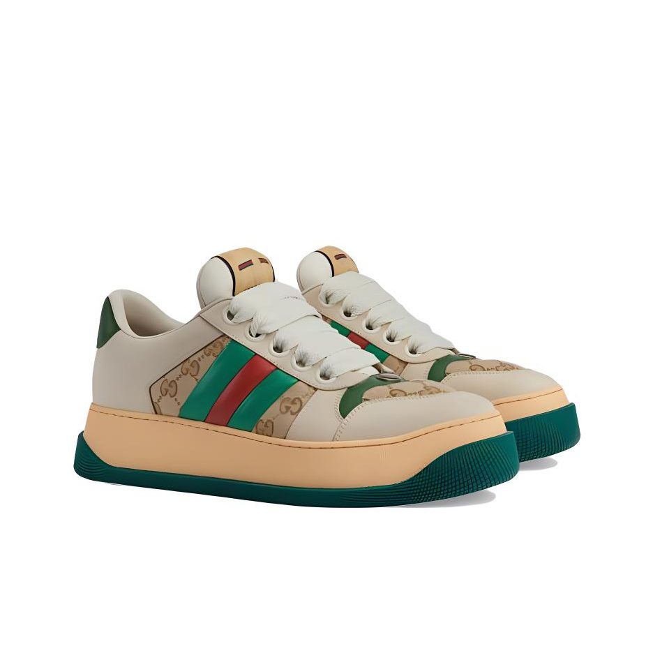 구찌 스크리너 스니커즈 웹 베이지 레더 777106 AAC72 9554