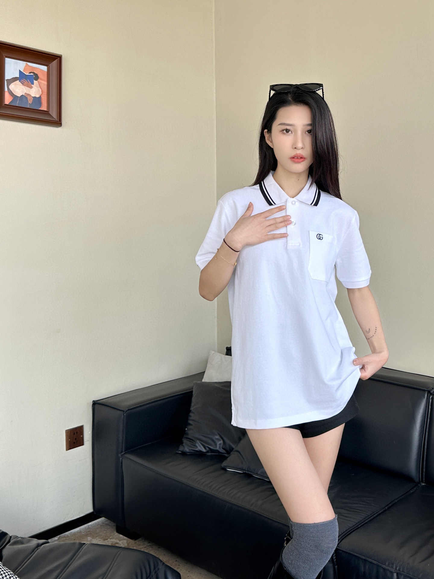 구찌 포켓 더블 G 자수 칼라 콘트라스트 컬러 반팔 폴로 셔츠-91446451