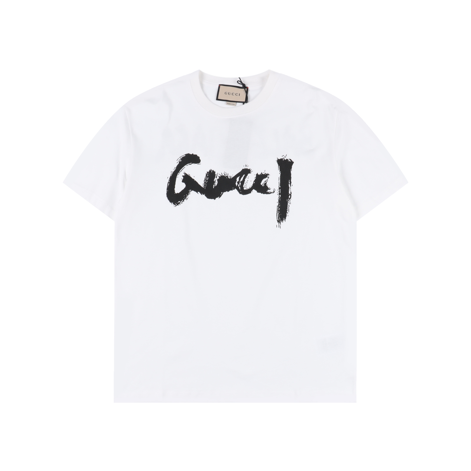 구찌 X 발렌시아가 공동 핸드페인팅 그래피티 프린트 반팔 티셔츠-91445977
