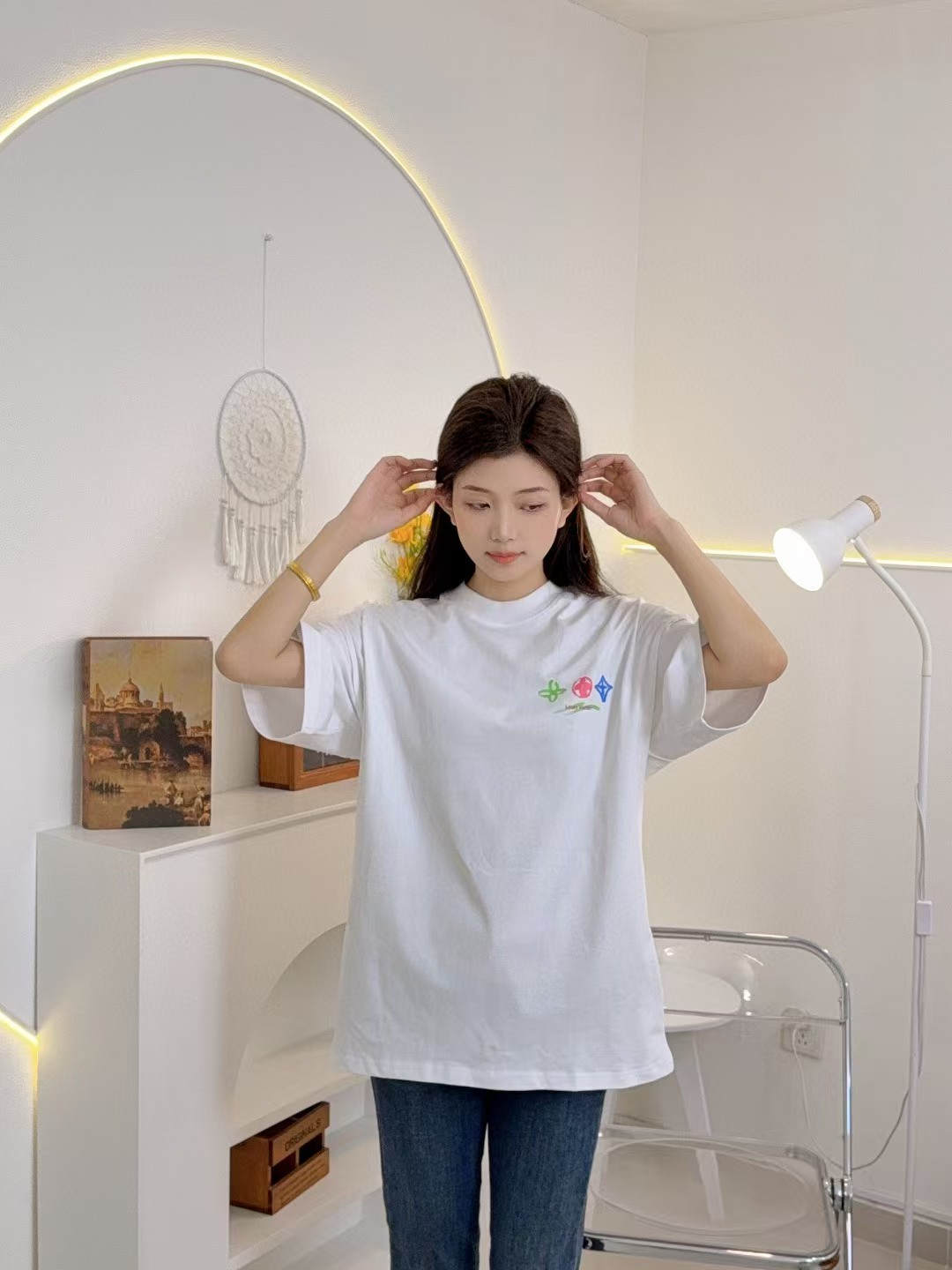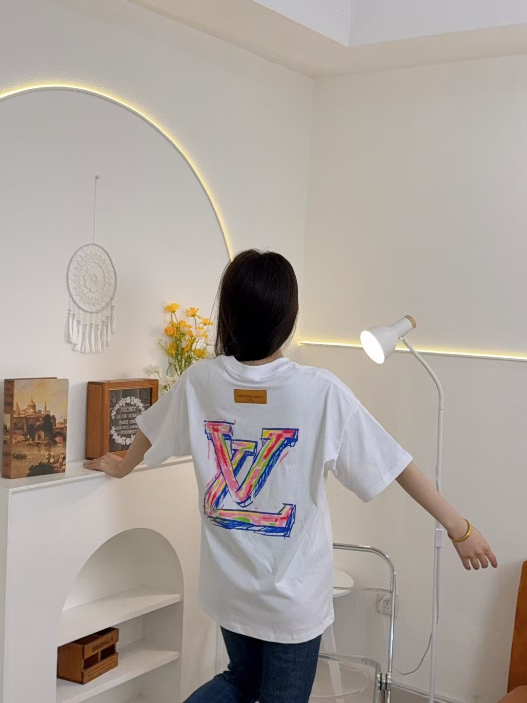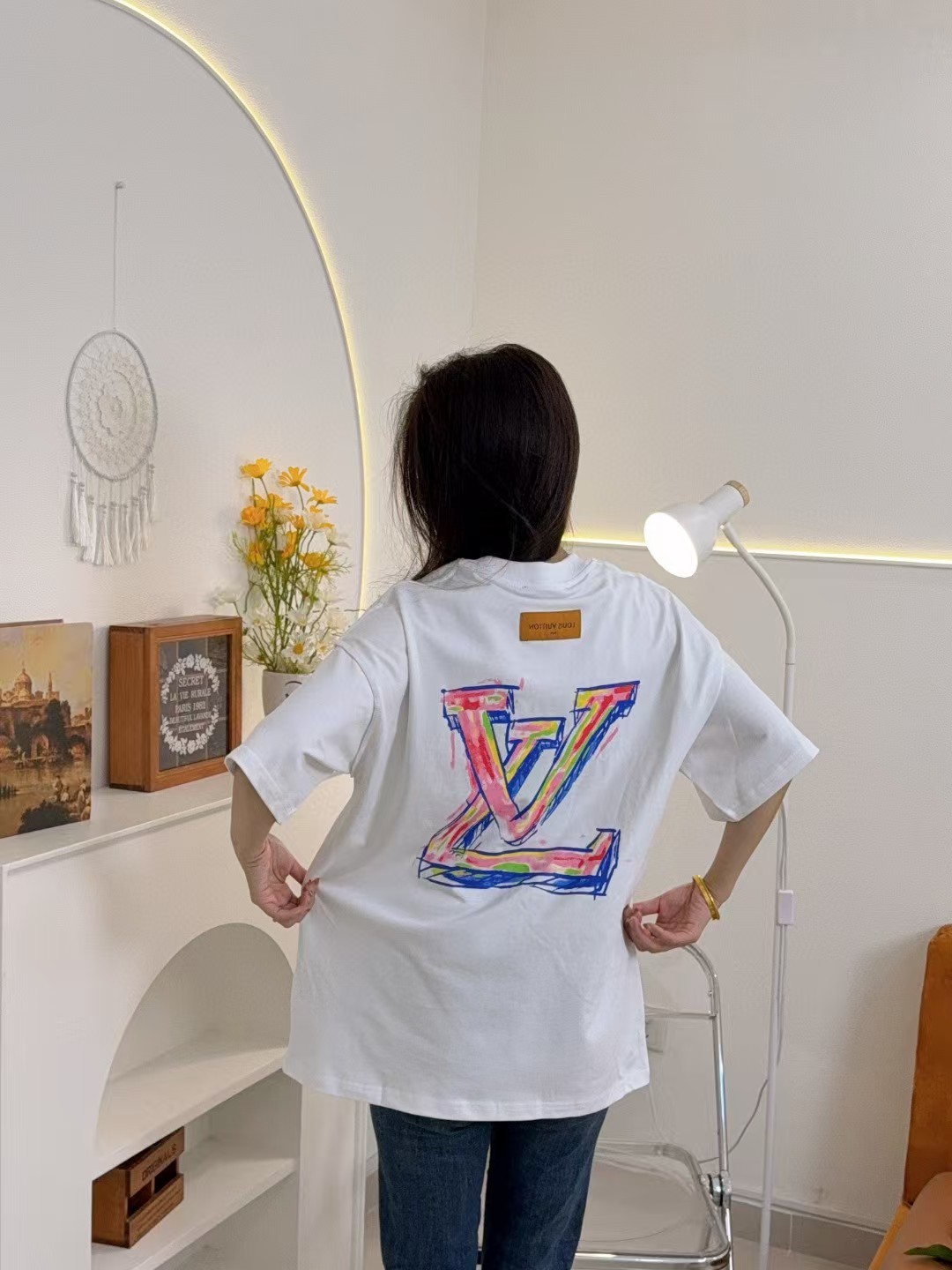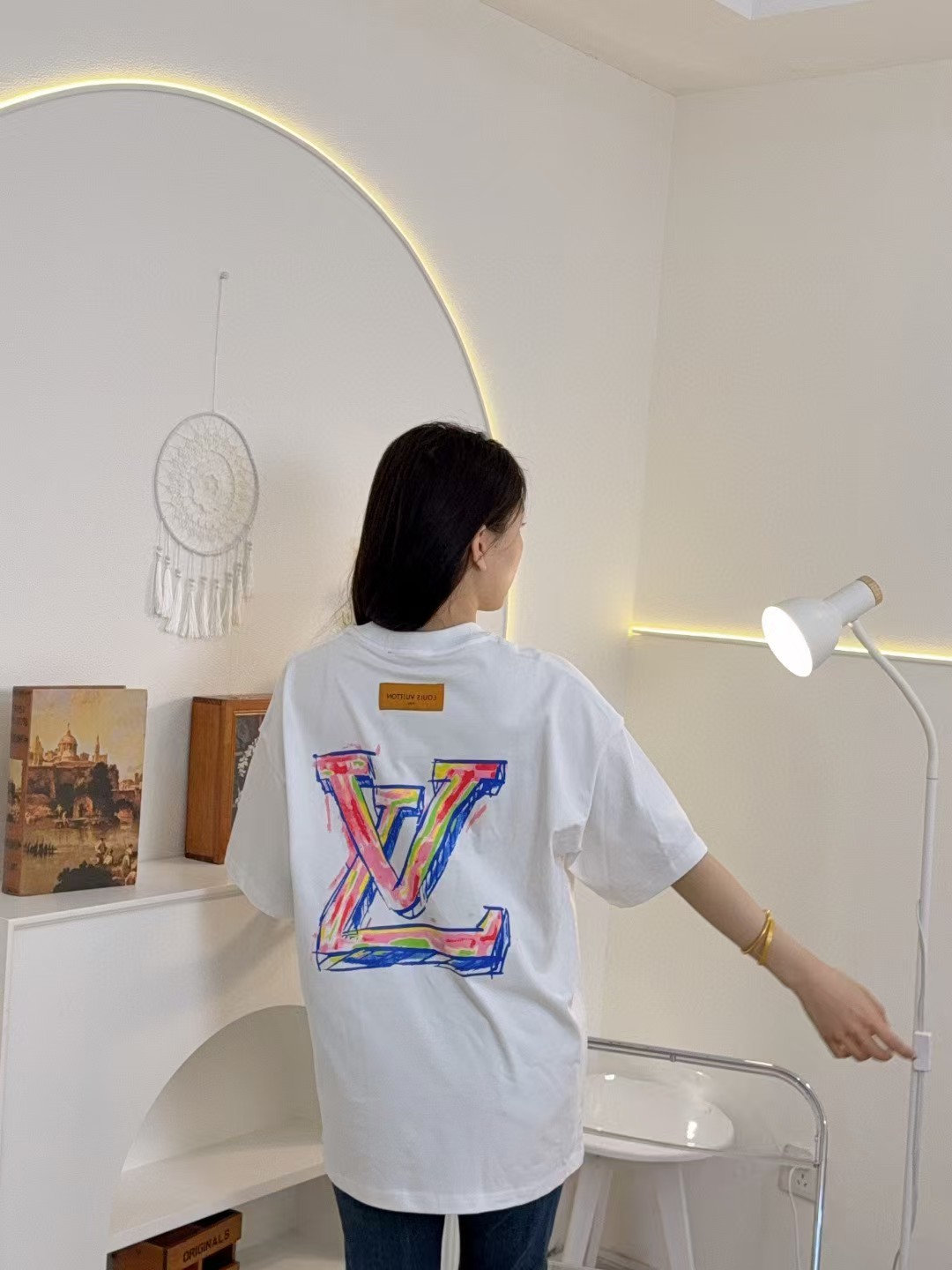 루이비통 그래피티 라지 로고 프린트 반팔 티셔츠-89419501