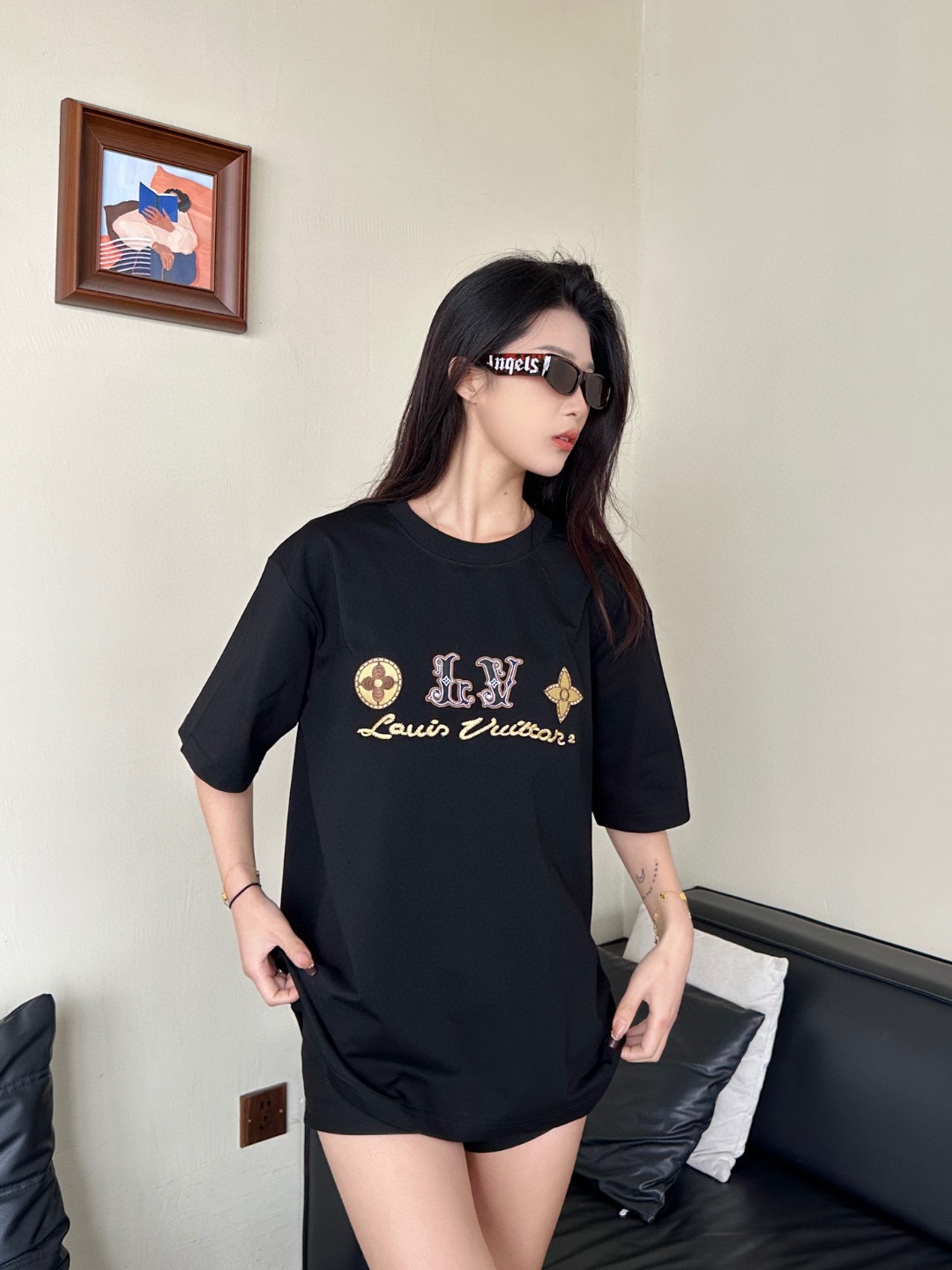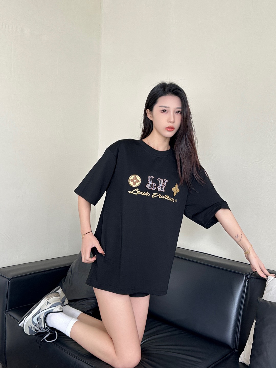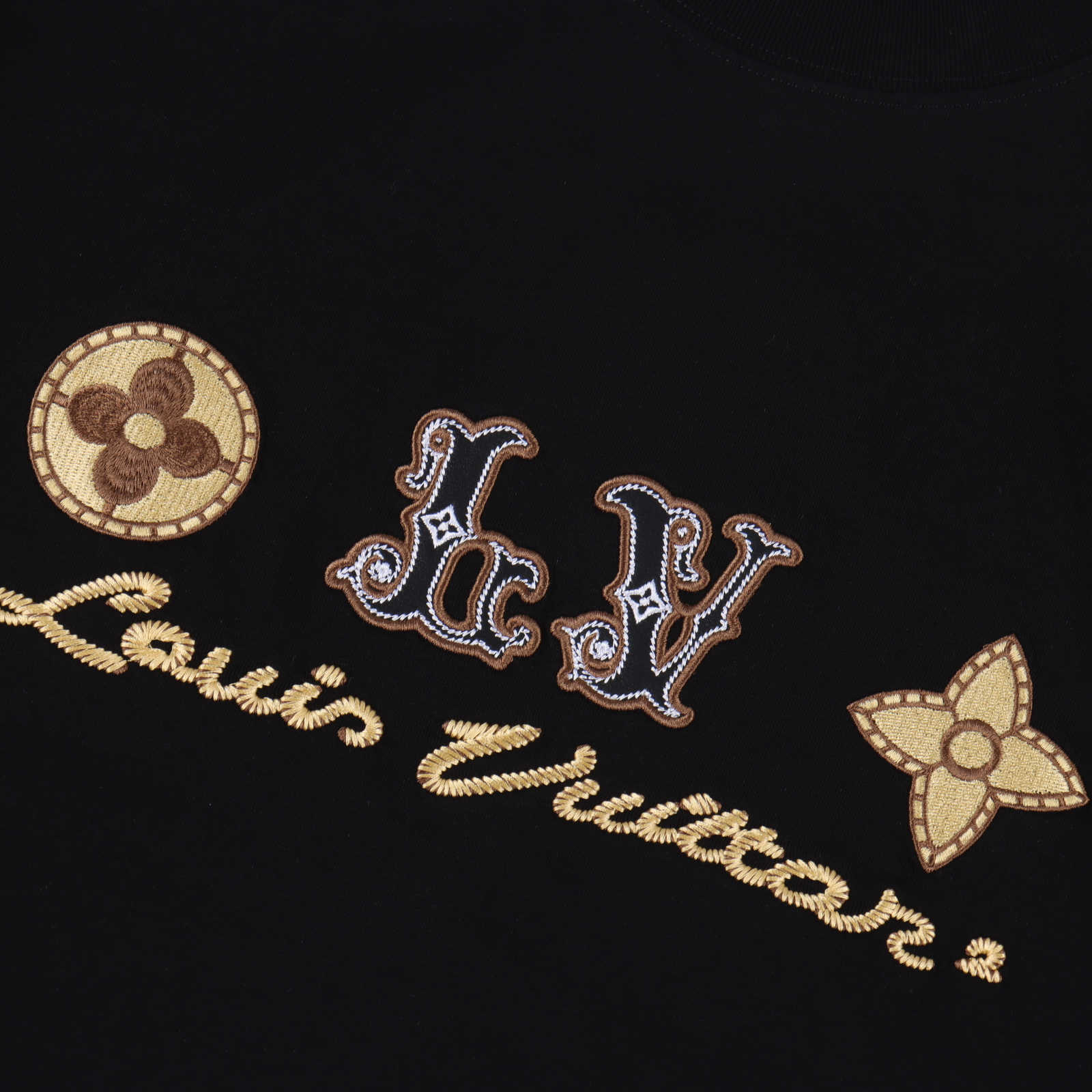 루이비통 시그니처 로고 네잎 클로버 자수 반팔 티셔츠-91446371