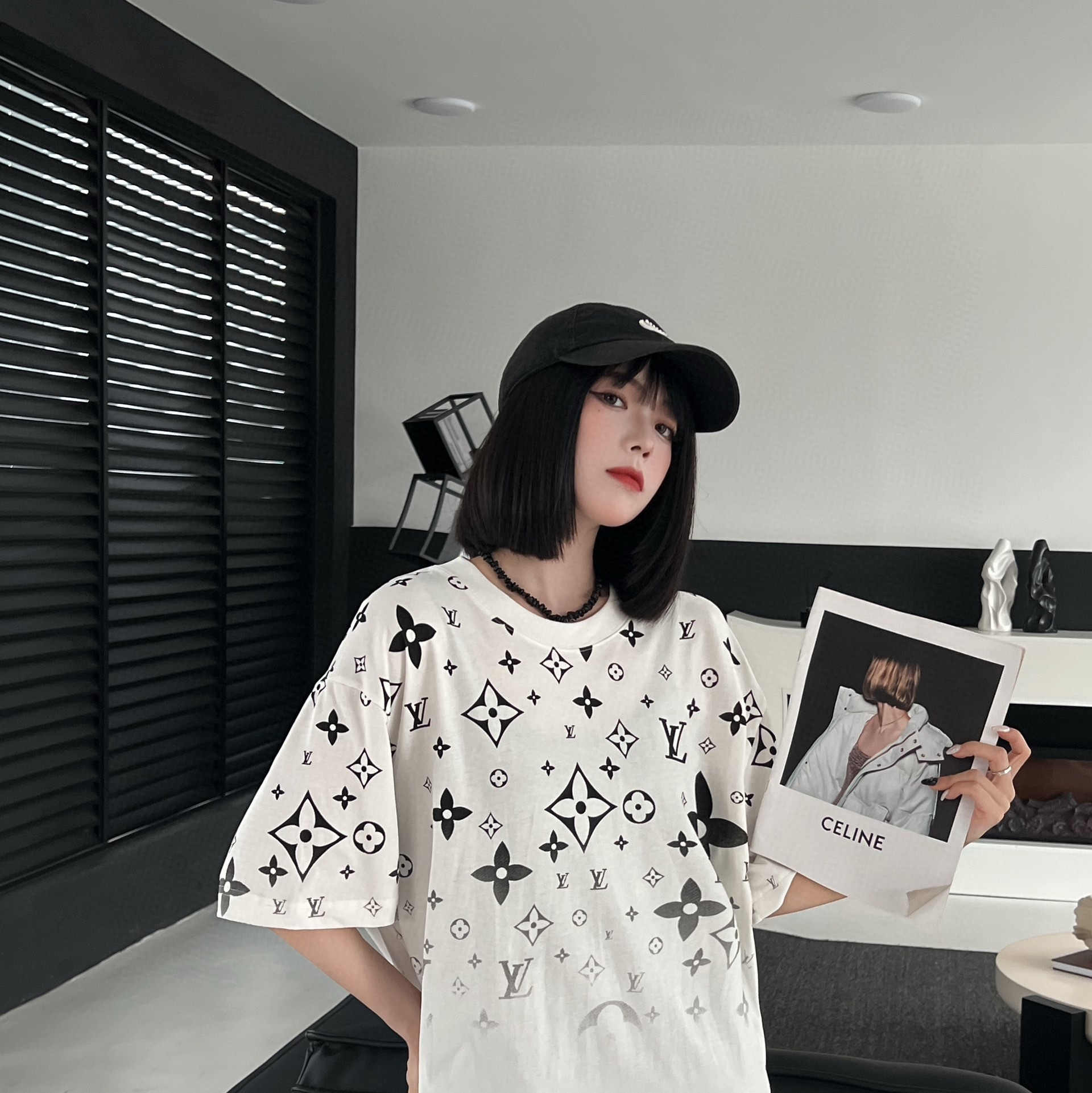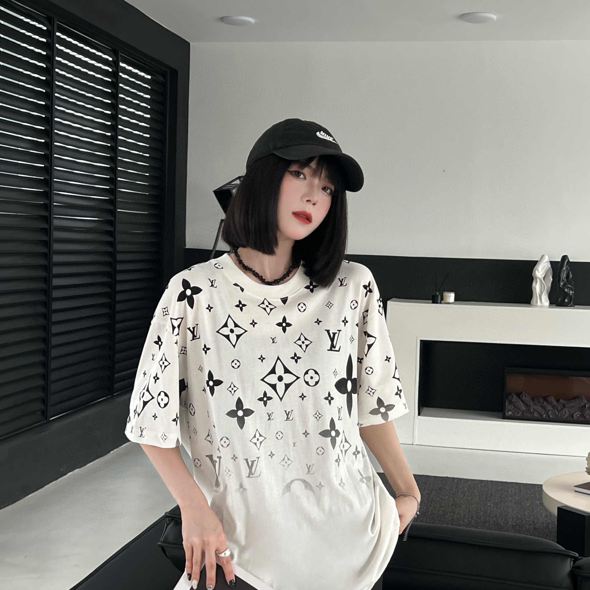 루이비통 쓰리 플라워 풀 프린트 반팔 티셔츠-91446528
