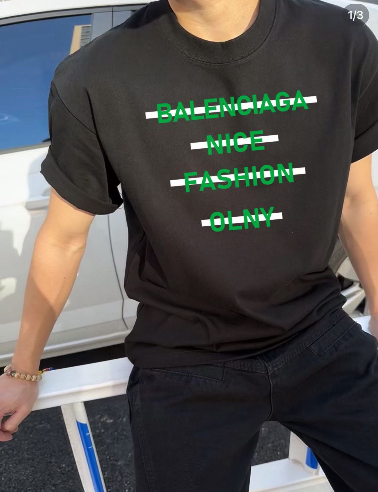 발렌시아가 가로 스트라이프 레터 프린트 반팔-90771892