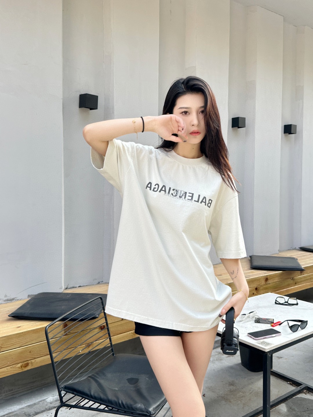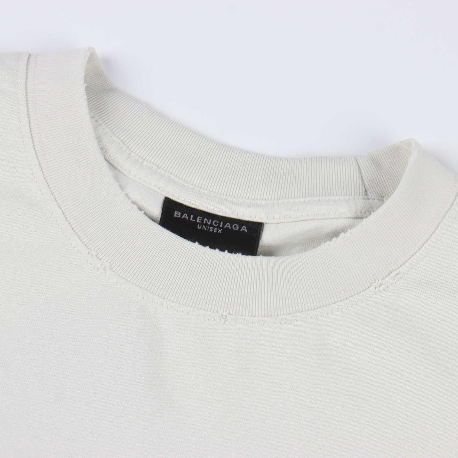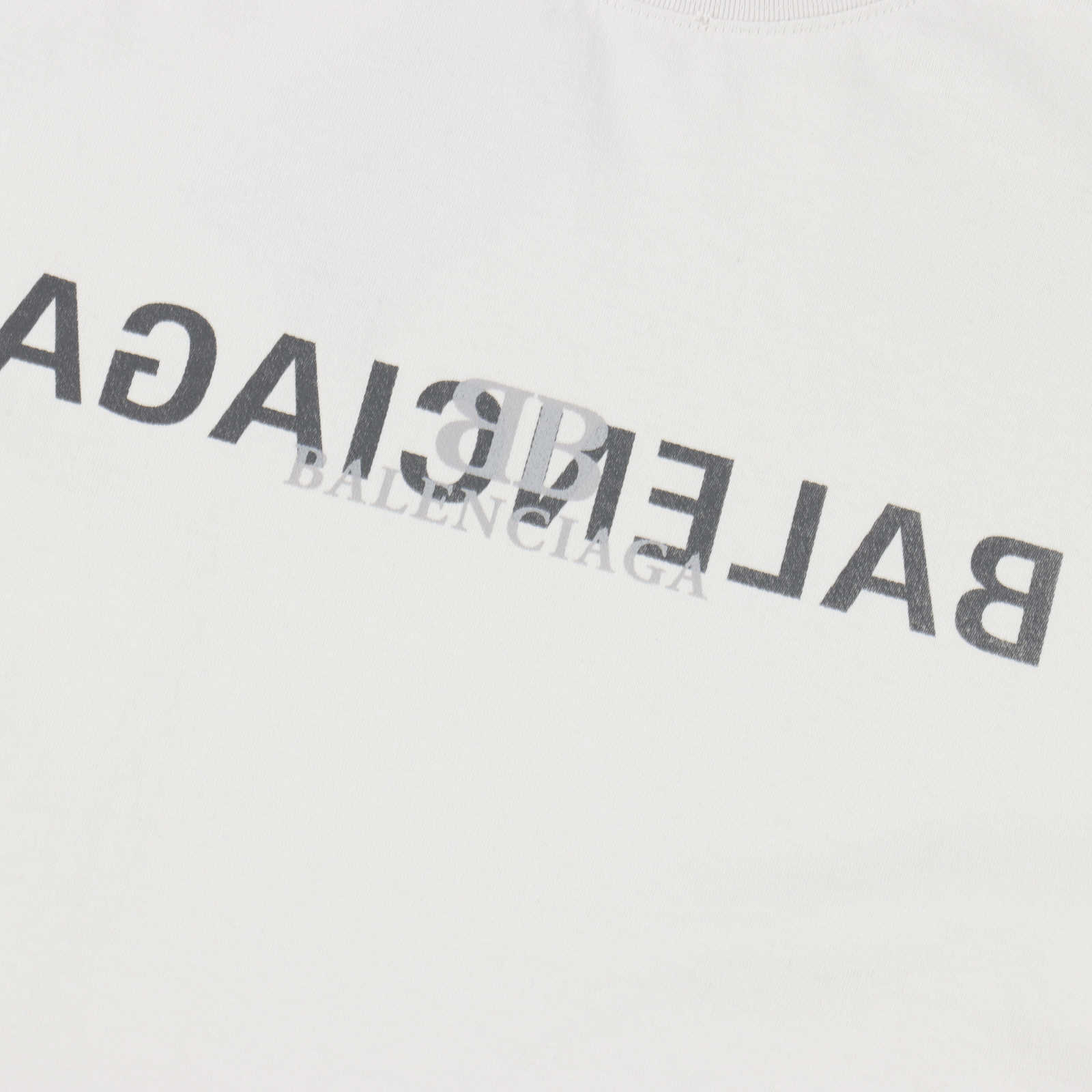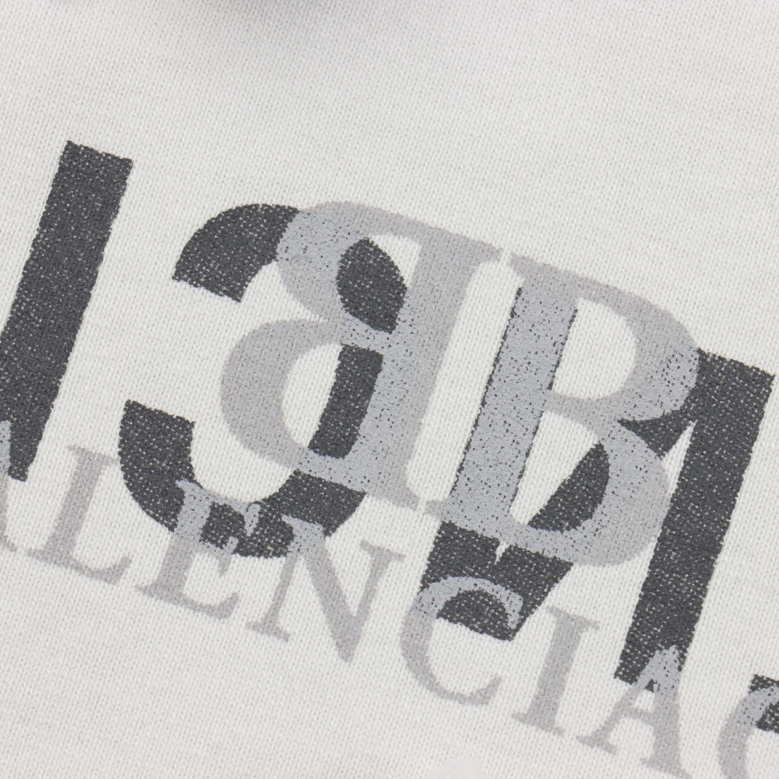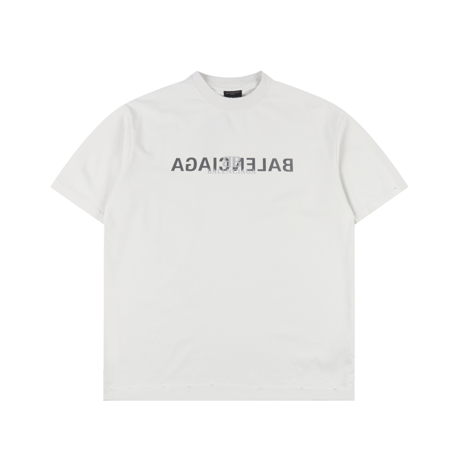 발렌시아가 리버스 레터 더블 B 프린트 워시드 리핑 반팔 티셔츠-89786312