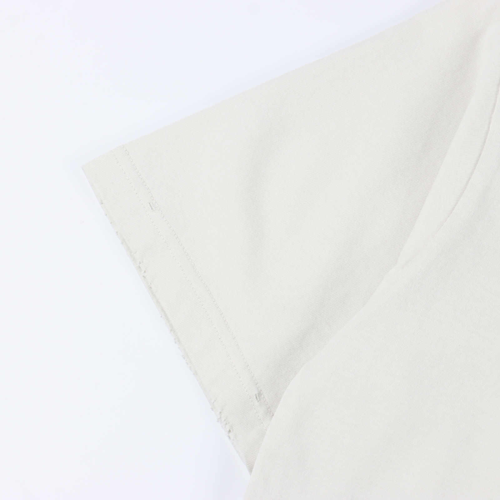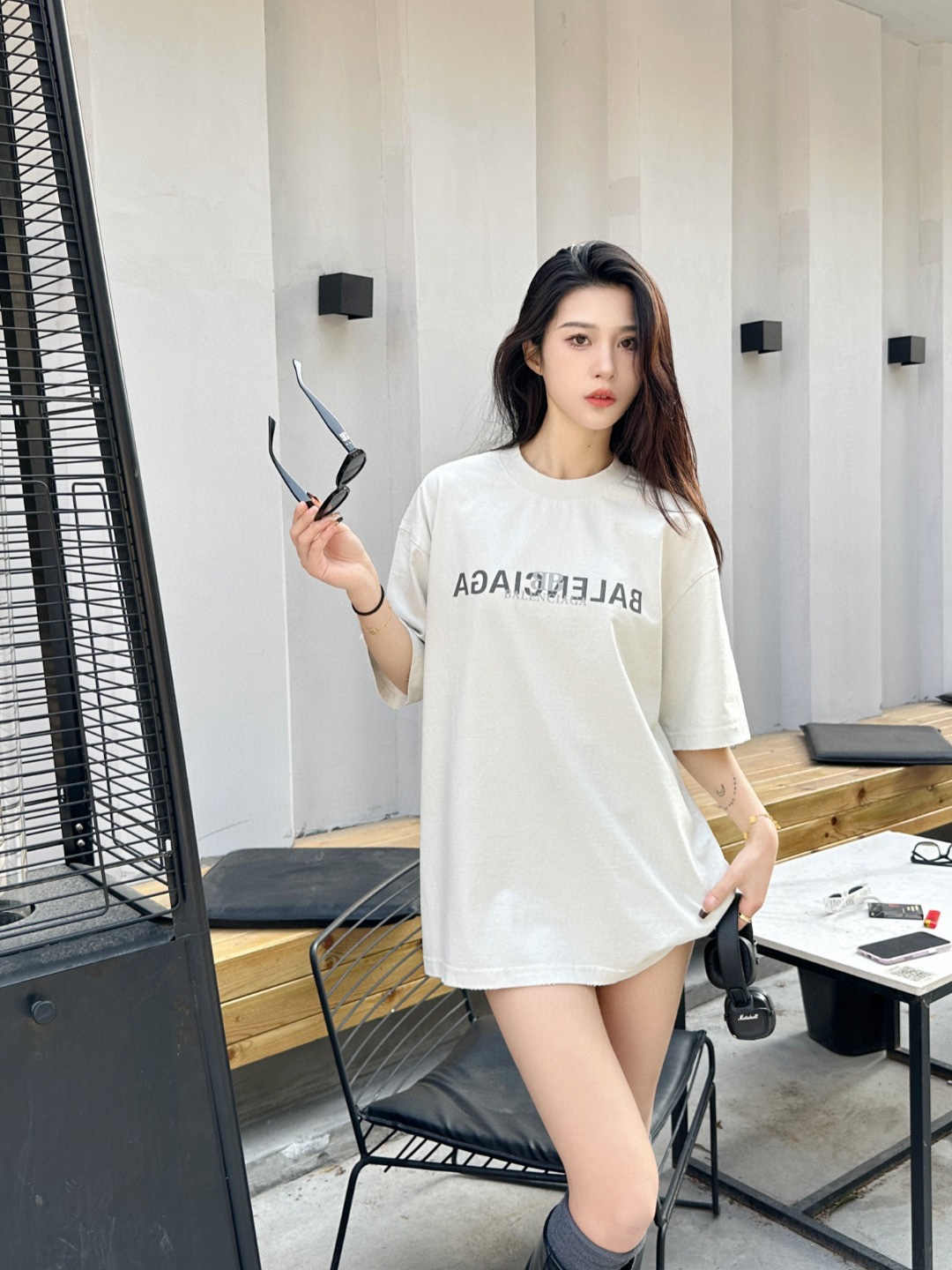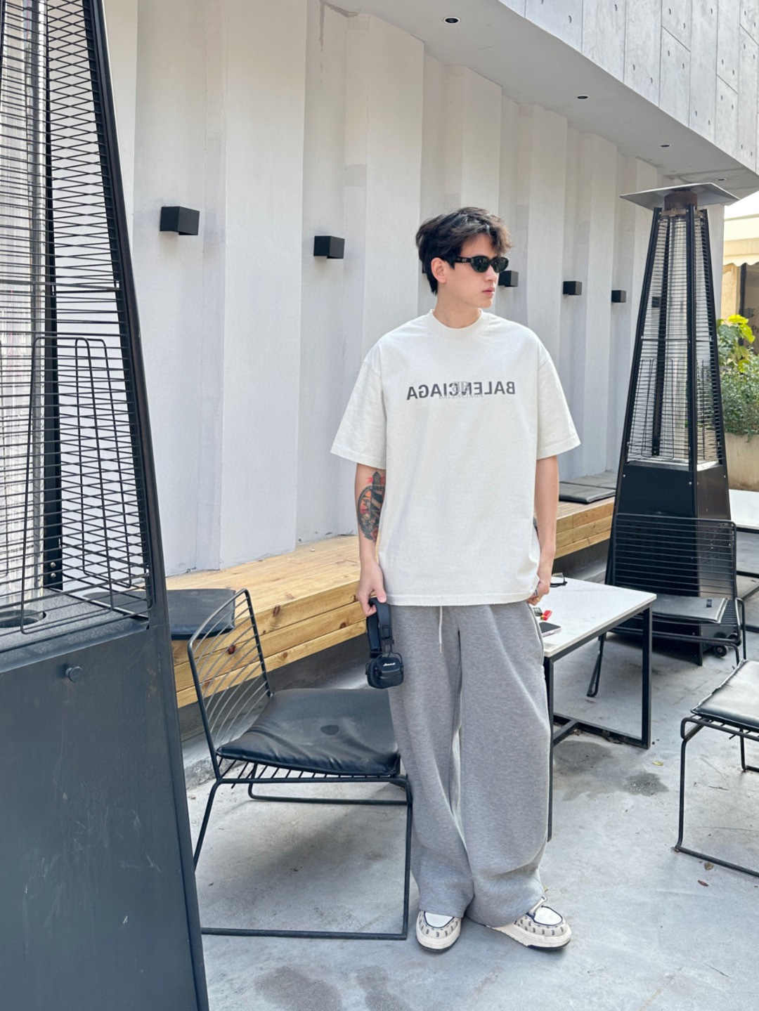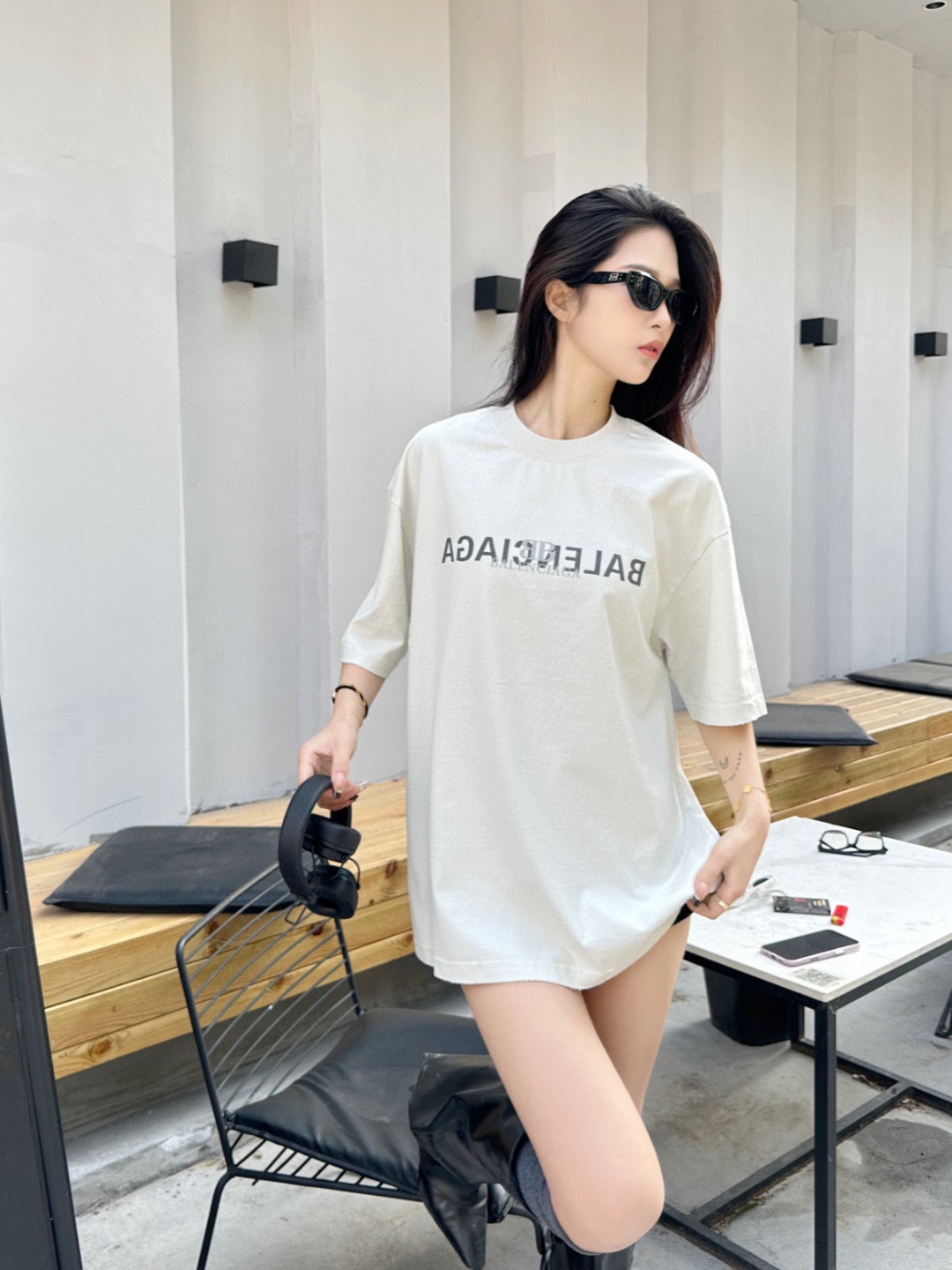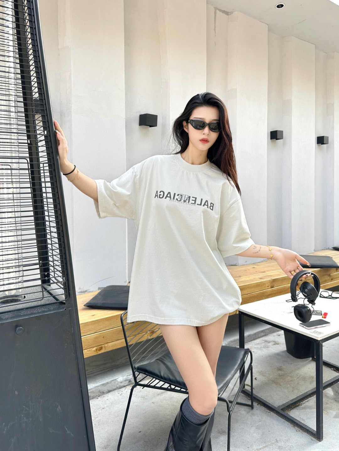 발렌시아가 리버스 레터 더블 B 프린트 워시드 리핑 반팔 티셔츠-89786312
