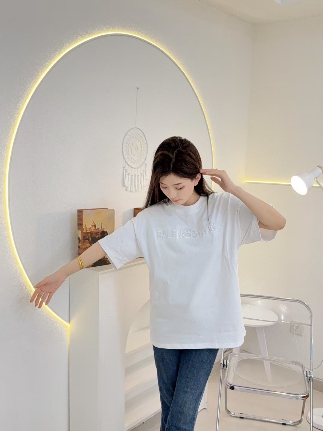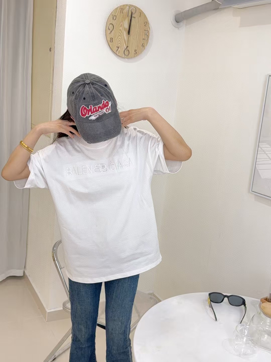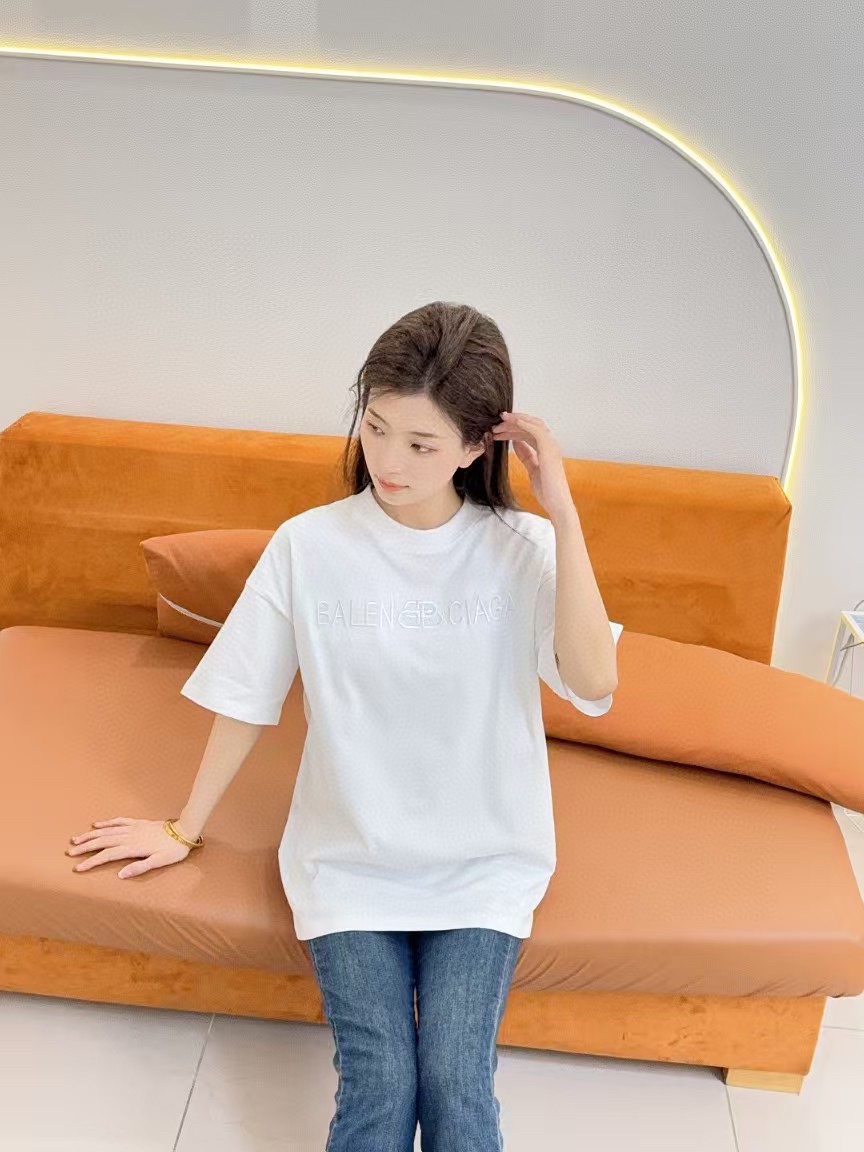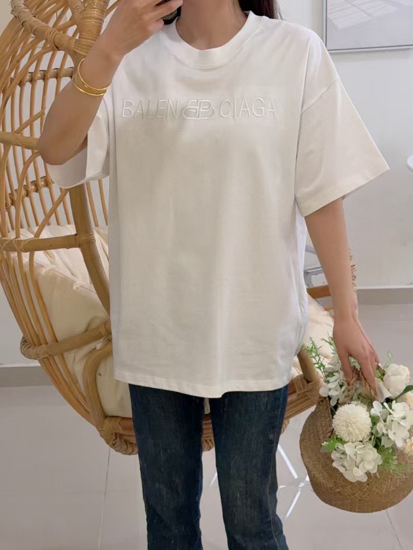발렌시아가 옵스큐어 락 레터 자수 반팔 티셔츠-92384306