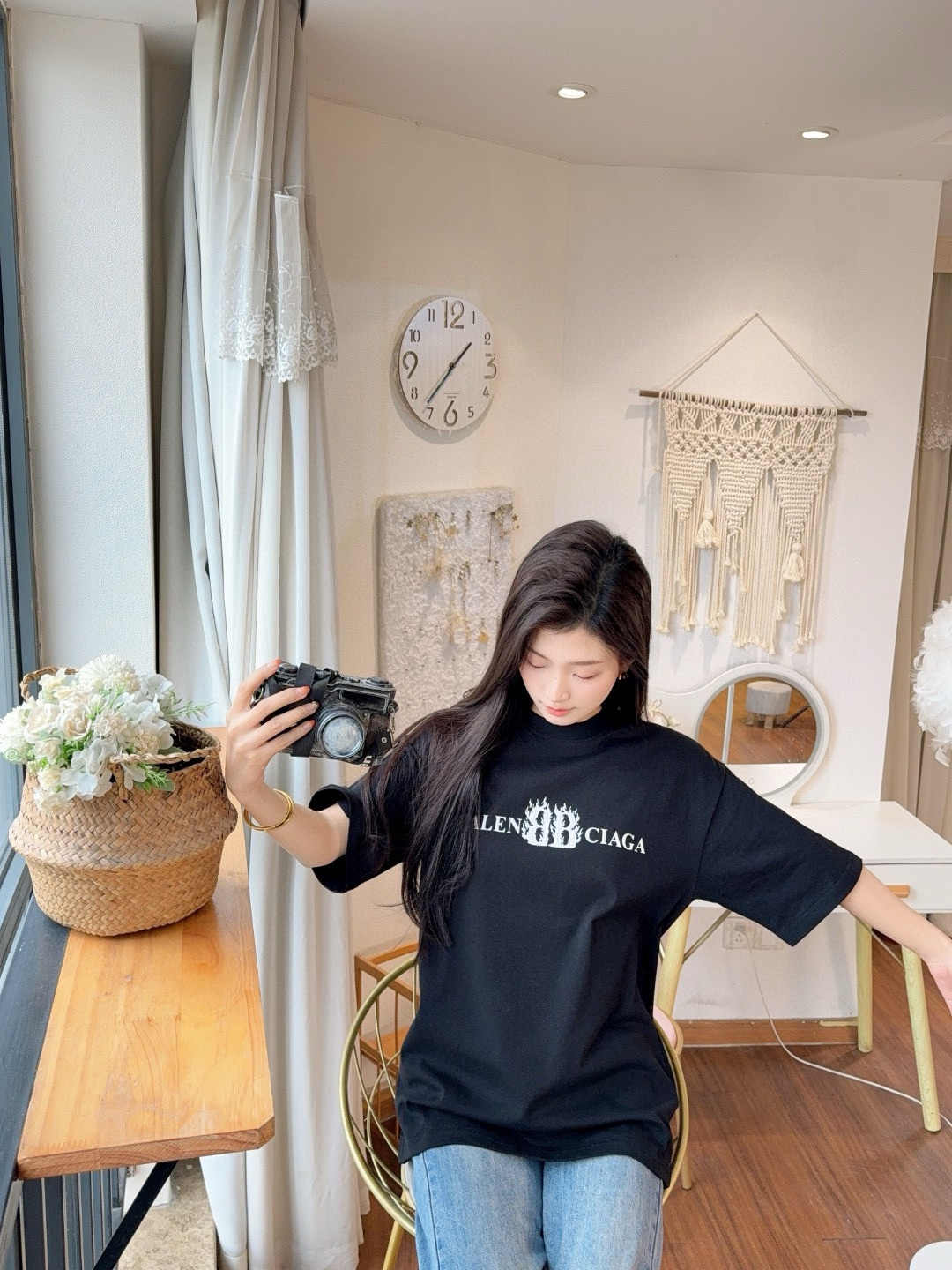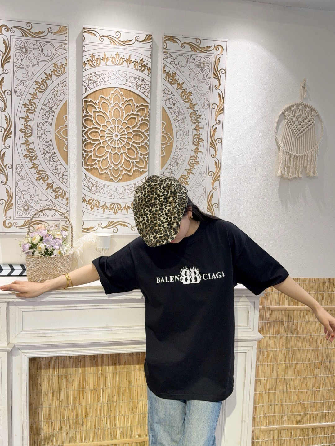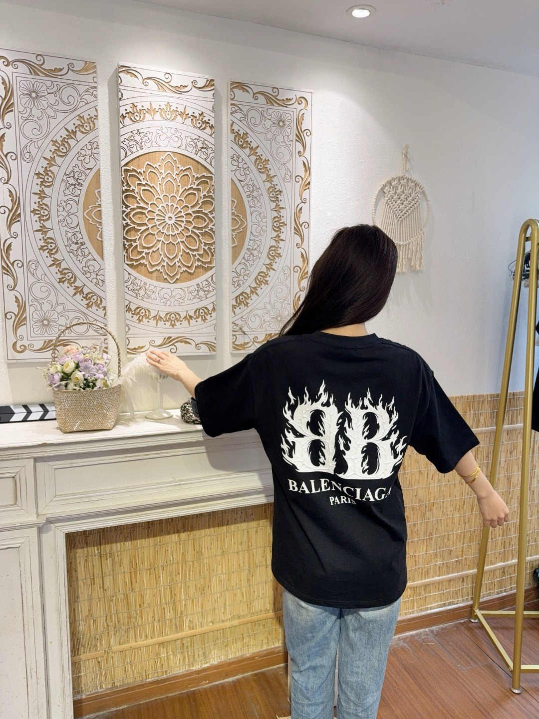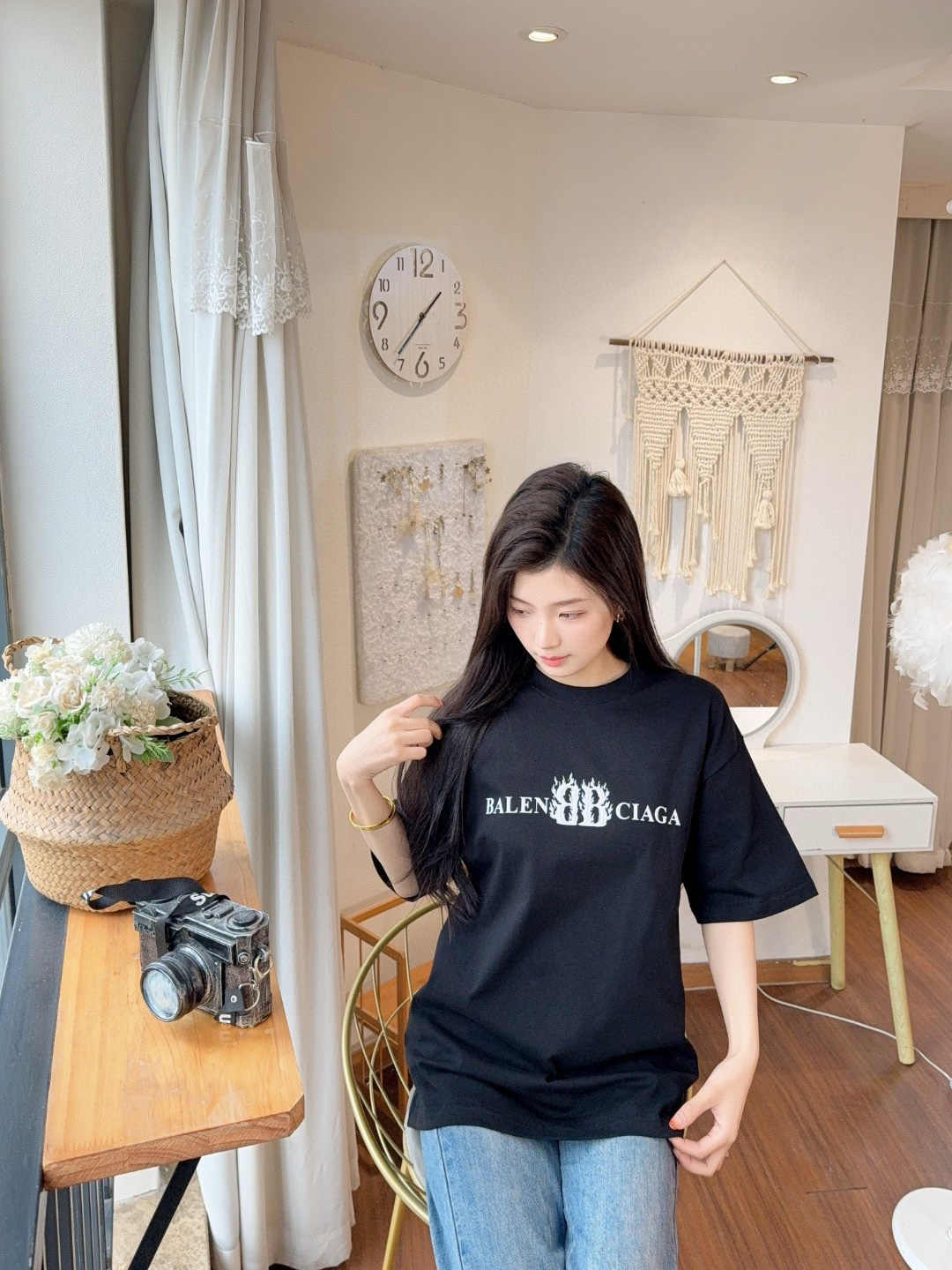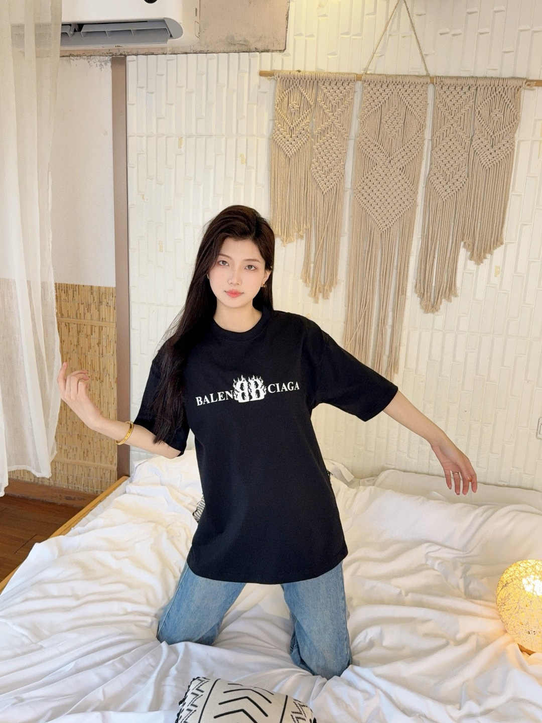 발렌시아가 플레임 더블 B 레터 프린트 반팔-91716441