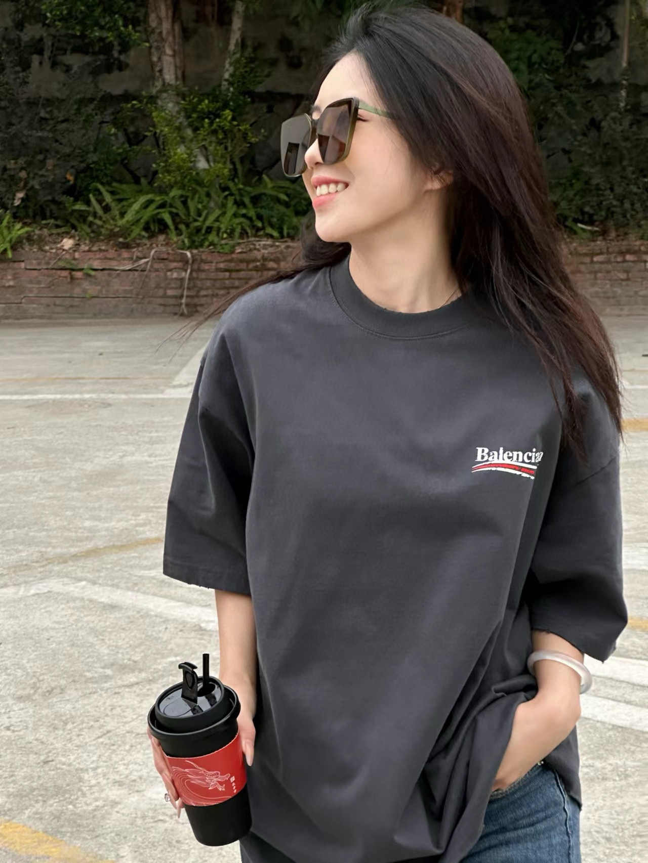 발렌시아가 24ss 코크 얼룩무늬 워시드 리핑 반팔 티셔츠-89861946